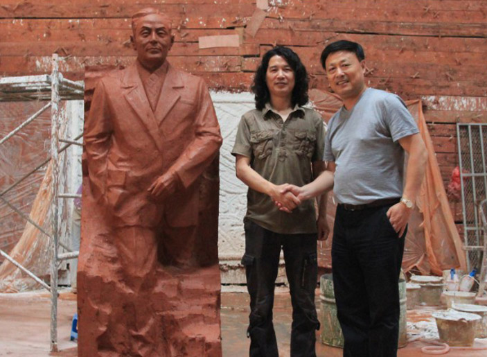 先登雕塑公司,東郭雕塑工作室受有關部門委托,為東南大學楊廷寶故居創作青銅全身像,楊廷寶之女,楊士英教授及其孫女、潘翔處長和相關領導蒞臨先登雕塑公司指導